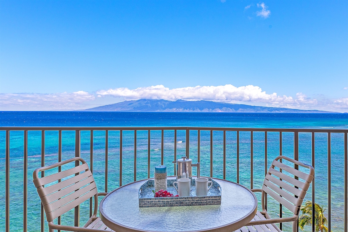 Välkommen till Royal Kahana! Utsikten från din privata lanai är förstklassig. Utsikten inkluderar hav, solnedgång, närliggande öar, berg och till och med knölvalar. Koppla av i vår uppgraderade studio som har alla bekvämligheter du behöver för en fantastisk vistelse. Senaste uppgraderingar inkluderar uppdaterad belysning, konstverk, möbler, alla nya sängkläder och kuddar, nya och ytterligare sittplatser på lanai och OLED-TV. USB-portar vid säng och kök. Passar för par, med bäddsoffa kan vi rymma 3.