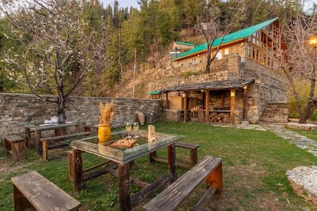 Glamoreo, bara 1 timme frĂ„n Shimla. Fantastisk interiör i valnöt, inklusive alla möbler. TrĂ€badkar utomhus, perfekt för att bada i den friska bergsluften. Omkringliggande omrĂ„de Ă€r öppet och rymligt. Du kan promenera runt, njuta av den natursköna utsikten och fĂ„ en kĂ€nsla för livet pĂ„ landsbygden. Allt hĂ€r Ă€r ekologiskt, frĂ„n mat till mejeriprodukter. Om du inte kĂ€nner för hemlagade mĂ„ltider finns det kafĂ©er och restauranger bara 3â4 km bort, och du kan antingen besöka dem eller fĂ„ mat levererad
