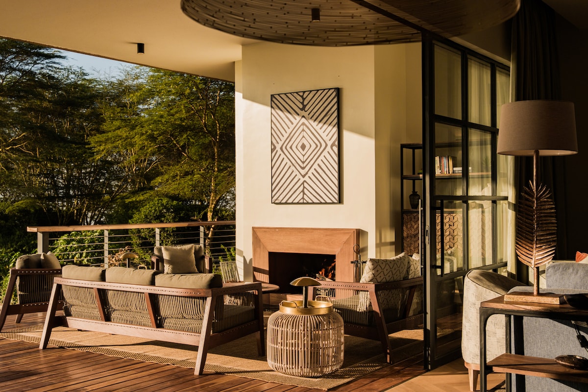 A grand 4-bedroom lake-view retreat offering elegant interiors, spacious lounges, a full kitchen, and private comfort. Perfect for families and groups. Enjoy access to the villa’s pool, padel court, mini-golf, gardens, bonfire area, nature walks, and optional private chef. A luxurious escape on Lake Elementaita. Bring the whole family to this great place with lots of room for fun.