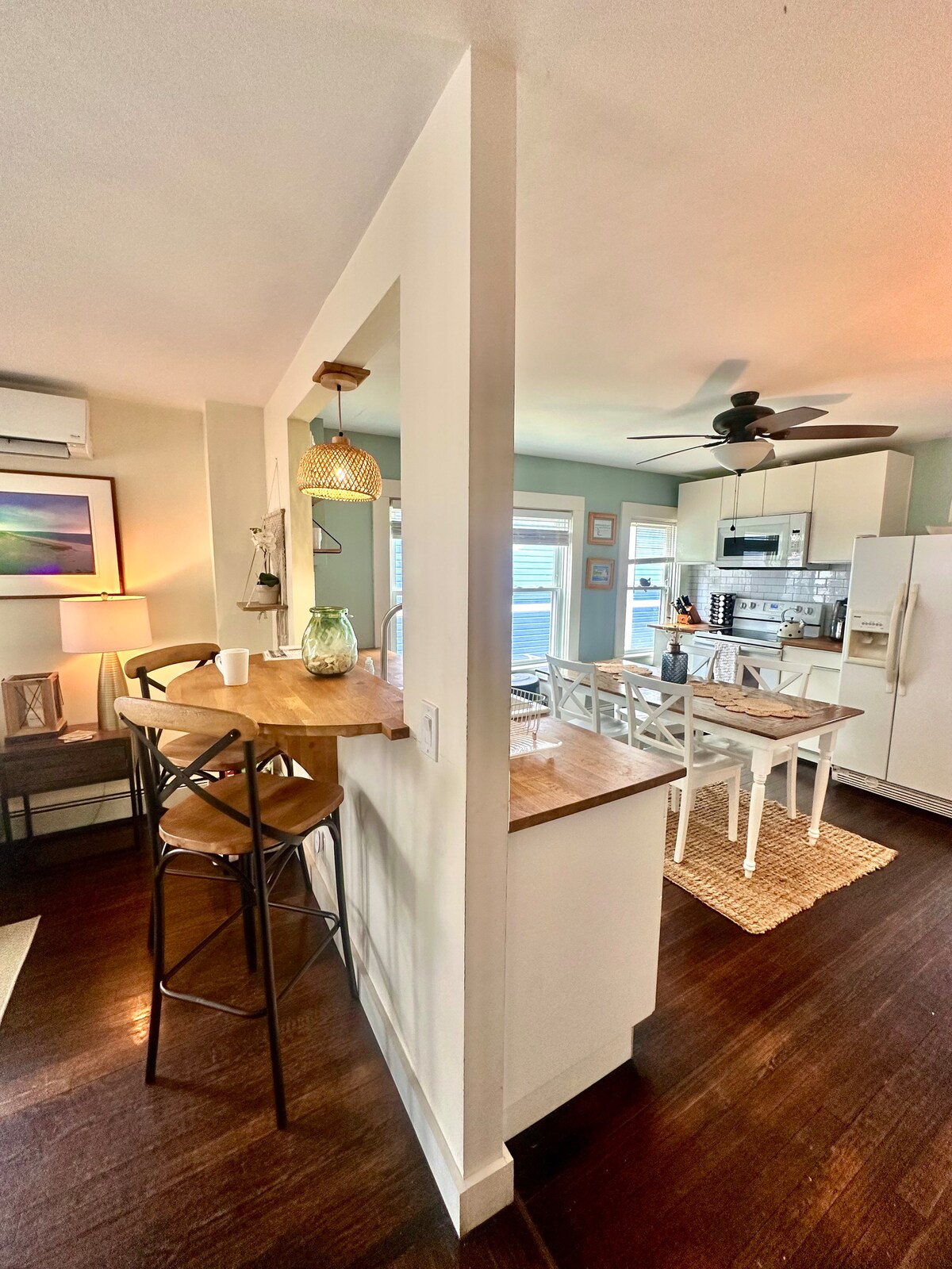 Detta fridfulla och centralt belägna boende är en solig och rymlig modern stuga med ett sovrum mitt i historiska Wakefield. Vi är några minuter från många RI-stränder. Promenera nerför till en härlig park på Saugatucket River, sedan korsa den charmiga gångbron in till staden. Här hittar du en mängd restauranger, kaféer och glass, plus utmärkt lokala teater, yoga och intressanta butiker. Koppla av i detta ljusfyllda boende eller sitt ute på altanen med utsikt över trädgården och staden.
