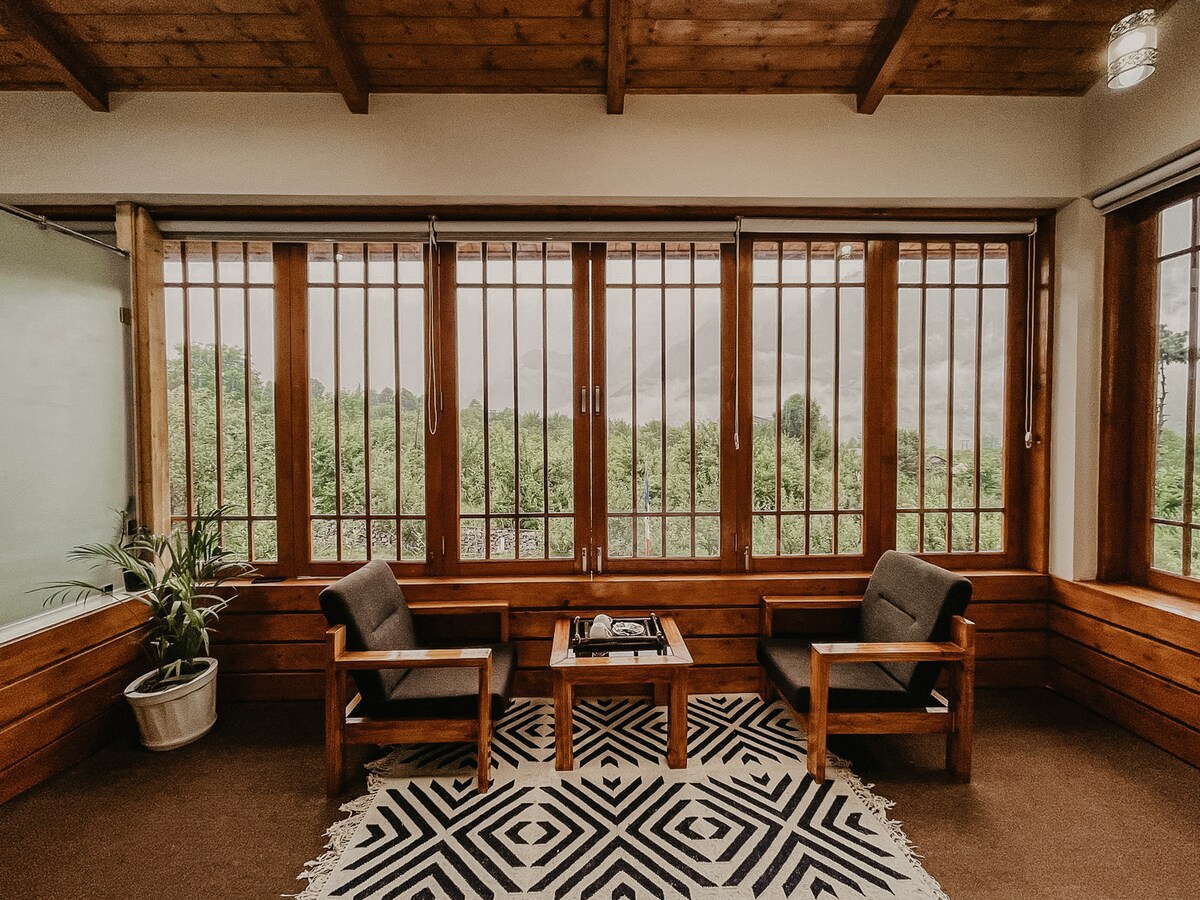 Stolt presenteras i "Travel + Leisure Asia" som ett av Indiens bästa Airbnbs med en öppen spis. Whistling Thrush Villa är en lugn 3 sovrum reträtt inbäddad i en lummig äppelträdgård i Naggar (30 minuter från Manali). Vakna upp till fågelsång och panoramautsikt över bergen. Genomtänkt inredning blandar Himachali-charm med modern komfort — perfekt för långsamma morgnar, brasor och lugn lyx i naturen.