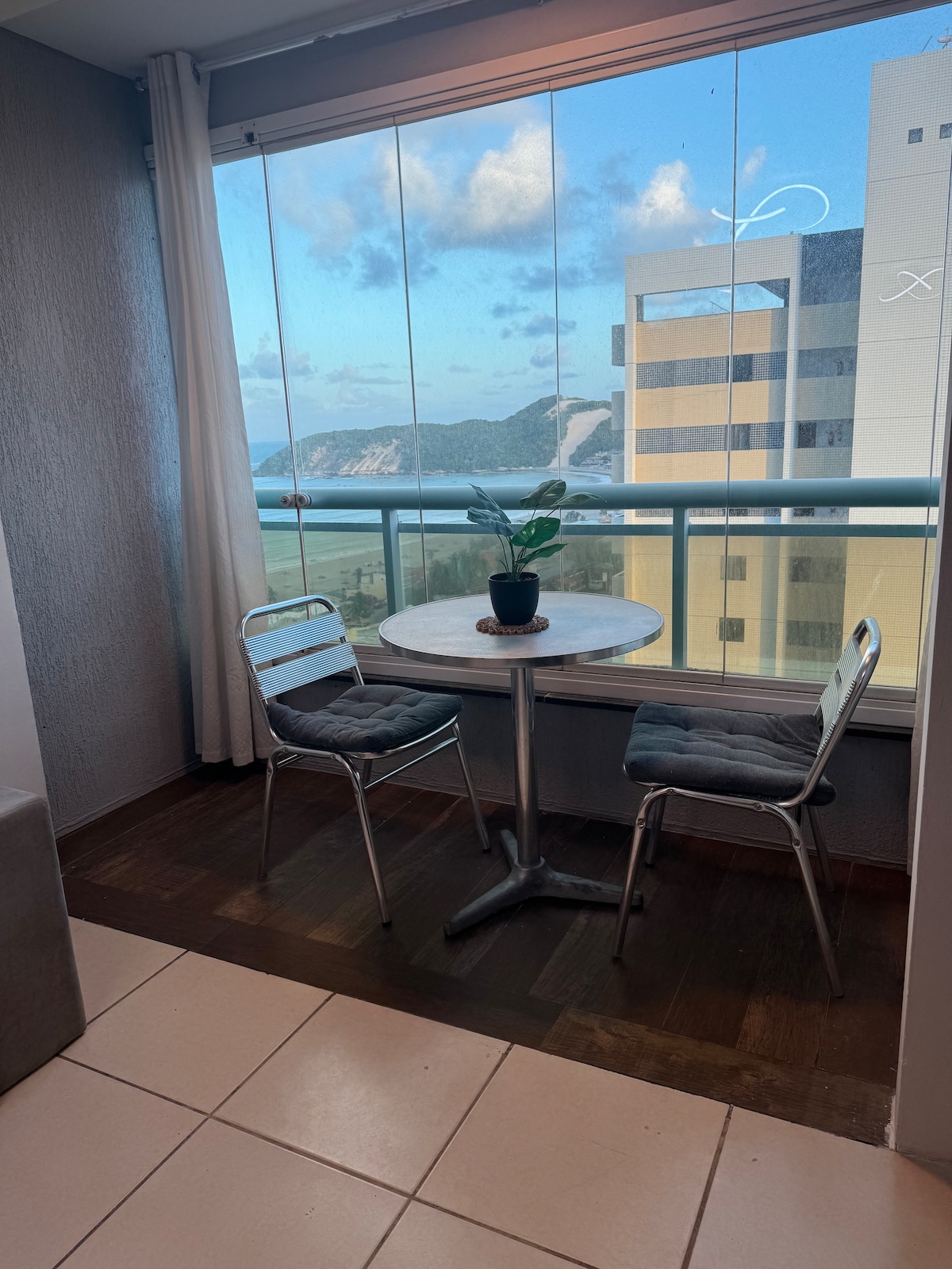 50 m² lägenhet, med 1 sovrum, vardagsal, kök och balkong, med utsikt över havet och den berömda Ponta Negra-stranden. Det är en extremt ny, bekväm och mysig lägenhet, utrustad med luftkonditioneringar, 50-tums Smartv med tillgång till Youtube och Netflix, med kabel-TV och internet, samt en vacker utsikt över havet och Morro do Careca. Köket är utrustat med porslin, bestick och diverse redskap, kylskåp i rostfritt stål, spishäll, mikrovågsugn, kaffebryggare och matbord.