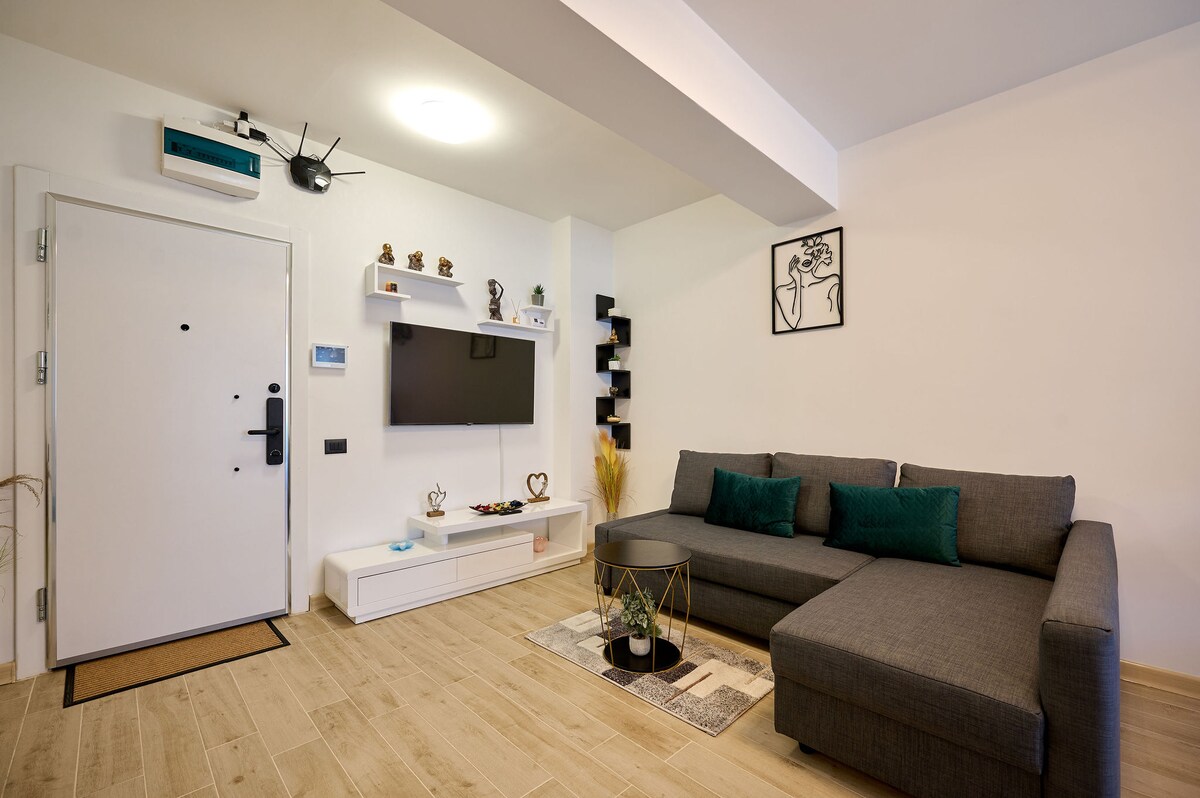 Jag är glad att presentera min 72kvm lägenhet i Mamaia Nord - ZEV Imperial. Det ligger i ett lugnt område, 300 m från stranden. Varje sovrum har en balkongutgång. Den är fullt utrustad och möblerad, enligt de senaste trenderna inom lyx och kvalitet. Det är värt att nämna: skräddarsydda möbler från Italien, Dormeo madrasser och kuddar, elektroniska apparater och hushållsapparater, etc. Det finns också en gratis parkeringsplats