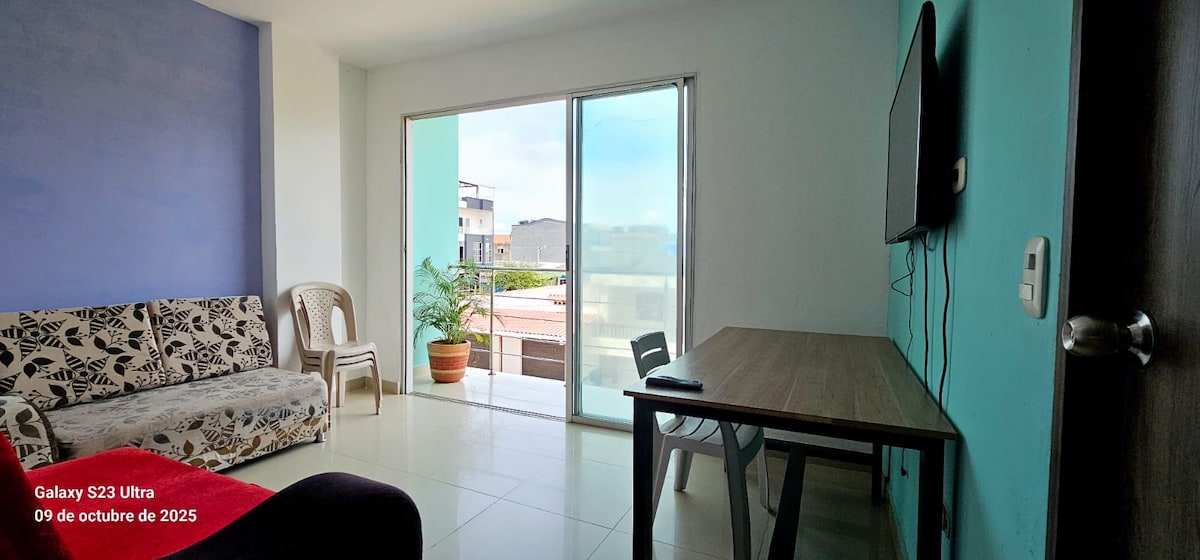 "STRANDHUSET" Necoclí, Antioquia. Njut av ett ställe utformat för att dela med familj och vänner i en lugn atmosfär. Modern lägenhet på tredje våningen 120 meter från stranden. Matsal med soffa bäddsoffa halvdubbelsäng. Kök och fullt utrustad lägenhet för 6. Sovrum 1: Dubbelsäng, AC, balkong med havsutsikt och privat badrum Sovrum 2: semi-dubbelpallsäng, AC och en takfläkt. Socialt badrum. Carport ledigt