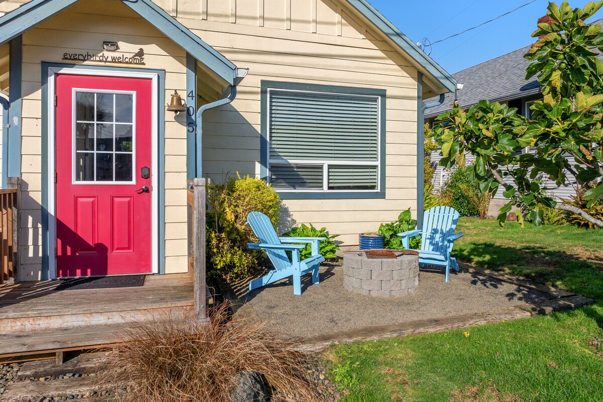Havsutsikt från varje fönster och bubbelpoolen ger en vacker NW-strandresa när som helst på året! Gullymonster är en klassisk Oregon kuststuga byggd 1976 och kärleksfullt uppdaterad som en djurvänlig tillflyktsort för familjer, par och vänner. En rymlig strandnära altan är idealisk för soliga dagar och fönster från golv till tak gör det mysigt att titta på vågor inomhus oavsett årstid. Tillgång till stranden ligger bredvid stugan nerför en sandig stig genom söta doftande sanddynsgräs och inhemsk salal.