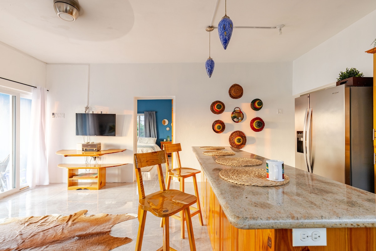 Denna svit har fått sitt namn efter skatter formade av havet och har ett öppet kök, matsal och vardagsrum. Det har tre sovrum: Rocksteady-sovrummet, som hyllar Jamaicas musikaliska arv; Bush-sovrummet, inspirerat av lugnet på landsbygden; och Oasis-sovrummet, som erbjuder en fantastisk utsikt över havet. Hitta din plats att koppla av på: under ett mandelträd, vid stranden eller vid poolen. Avlasta matlagningsuppgifterna med vår kostnadsfria privata kocktjänst; ta bara med livsmedel eller låt oss köpa dem åt dig.