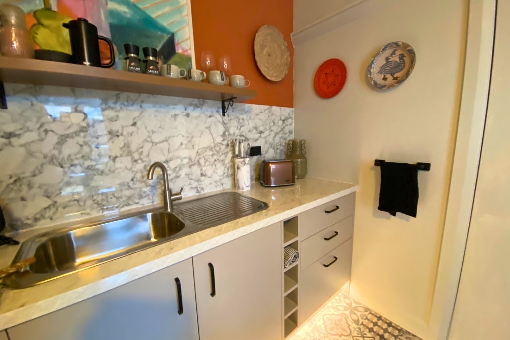 Beläget under tio minuters bilväg till City, Beach, Golf Course, Airport. Har utsikt över havet, bergen, stranden. Commodore Suite, belägen på entréplan i vårt hus, är solig, mycket varm, ljus och luftig. Ett sovrum, badrum, vardagsrum och kokvrå med 2 spisar, mikrovågsugn, slow cooker, luftfritös och bänkgrill. Grill finns tillgänglig på övre däck liksom användning av det däcket. Tvättmaskin och torktumlare finns i vårt vardagsrum som gäster alltid är välkomna att använda. Inte lämpligt för barn.
