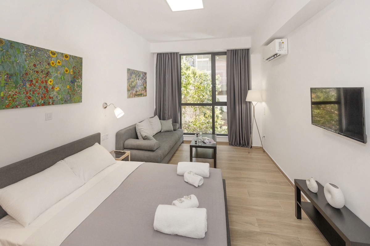 Gör en lätt frukost i ett mysigt kök med minimalistiska skåp och ät middag vid ett charmigt bistrobord på balkongen. På kvällen kan du luta dig tillbaka på en chic soffa och förlora dig i en bok i ett elegant, strömlinjeformat vardagsrum med hippa grafiska konstverk. 3 minuters promenad från tunnelbanestationen SygkrouFix, 8 minuters promenad från Akropolismuseet. — Eftersom COVID-19 har vuxit till pandeminivå arbetar vi för att säkerställa att den senaste vägledningen om hygien och rengöring efterlevs. Vi vidtar ytterligare åtgärder för hälso- och säkerhetsåtgärder och desinfektionsprotokoll för att upprätthålla högsta standard. Denna 40 m2 rymliga studio med en lyxig minimalistisk design, helt renoverad i mars 2018, är perfekt för par, liten grupp vänner eller par med ett barn som vill njuta av unika semestrar i Aten. Den öppna planlösningen består av ett entréområde, ett fullt utrustat kök, sovplats med dubbelsäng (kvalitetsmadrass och bomullssängkläder) en bekväm bäddsoffa och ett elegant badrum med alla bekvämligheter du kan behöva under din vistelse Höghastighets wi-fi, Netflix och grundläggande lokala kanaler. Luftkonditionering (värme och kyla), för vintern finns det också centralvärmesystem och öppen spis Vi står till ditt förfogande dygnet runt och ger dig all nödvändig information för att få en trevlig vistelse i vår sofistikerade lägenhet. Flexibel incheckning eftersom vi ger dig möjlighet till självincheckning under natten. - Långa vistelser är möjliga fråga om priserna för en månad eller längre Lägenheten ligger i det historiska Koukaki-distriktet, bara 8 minuters promenad från Akropolis-museet och ett stenkast från några av stadens mest populära historiska platser och museer. Ett livligt urbant sagoland ligger precis utanför dörren, med restauranger, bagerier, kaféer och cocktailbarer i närheten. För bokningar längre än 10 dagar erbjuder vi en extra städning och sängkläder under vistelsen utan kostnad.