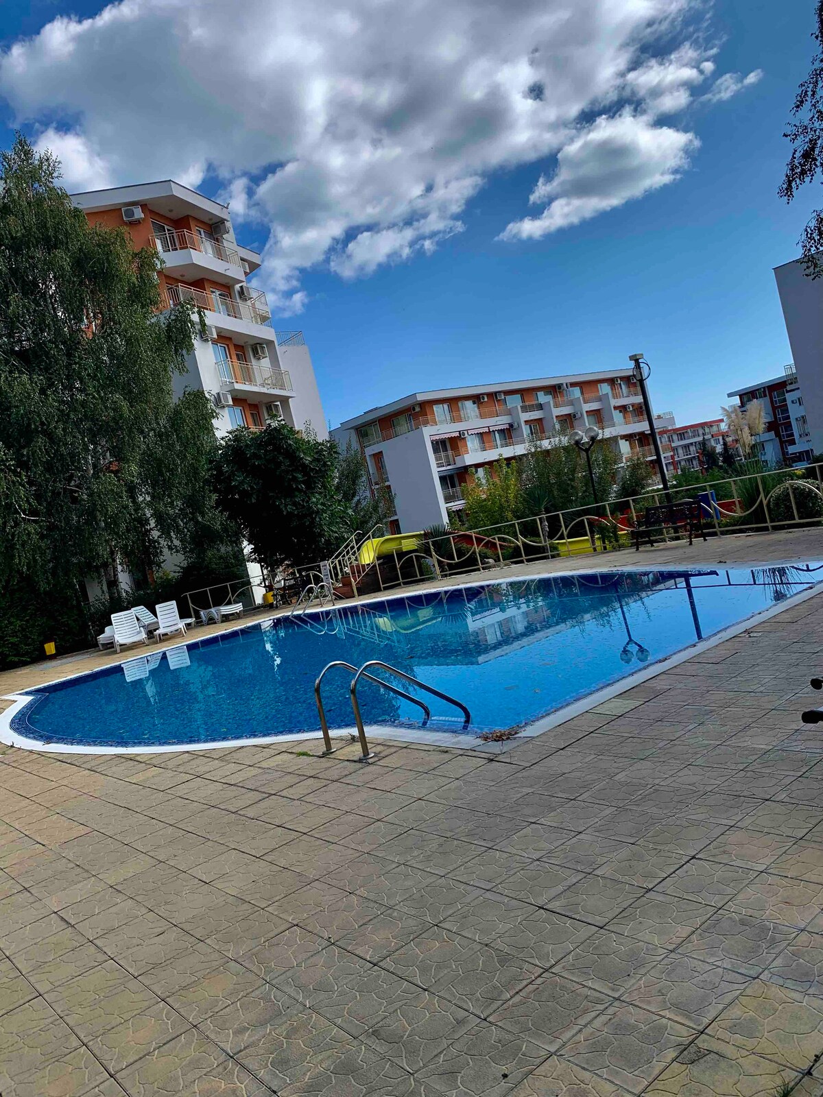 Lägenheten är ny och glänsande. Den ligger intill den underbara gyllene stranden Sunny Beach — 300 meter gångavstånd. Byggnaden är ett nytt privat komplex med många faciliteter såsom en pool, en trädgård, ett gym, en reception och en lekplats för barn. Du har tillgång till alla. Lägenheten har alla nödvändiga förutsättningar för din semester — fullt utrustat kök som innehåller en diskmaskin, en ugn, spishällar, ett kylskåp, köksredskap. Det finns också en tvättmaskin och en torktumlare, ett stort badrum. Balkongen har en fantastisk utsikt över trädgården och bergen. Det är ett perfekt ställe för morgonkaffe. Framför byggnaden finns två stormarknader. Det finns ett skrivbord för turistiska destination-biljetter till Aquapark, taxy station, utflykter, resa med hästar.