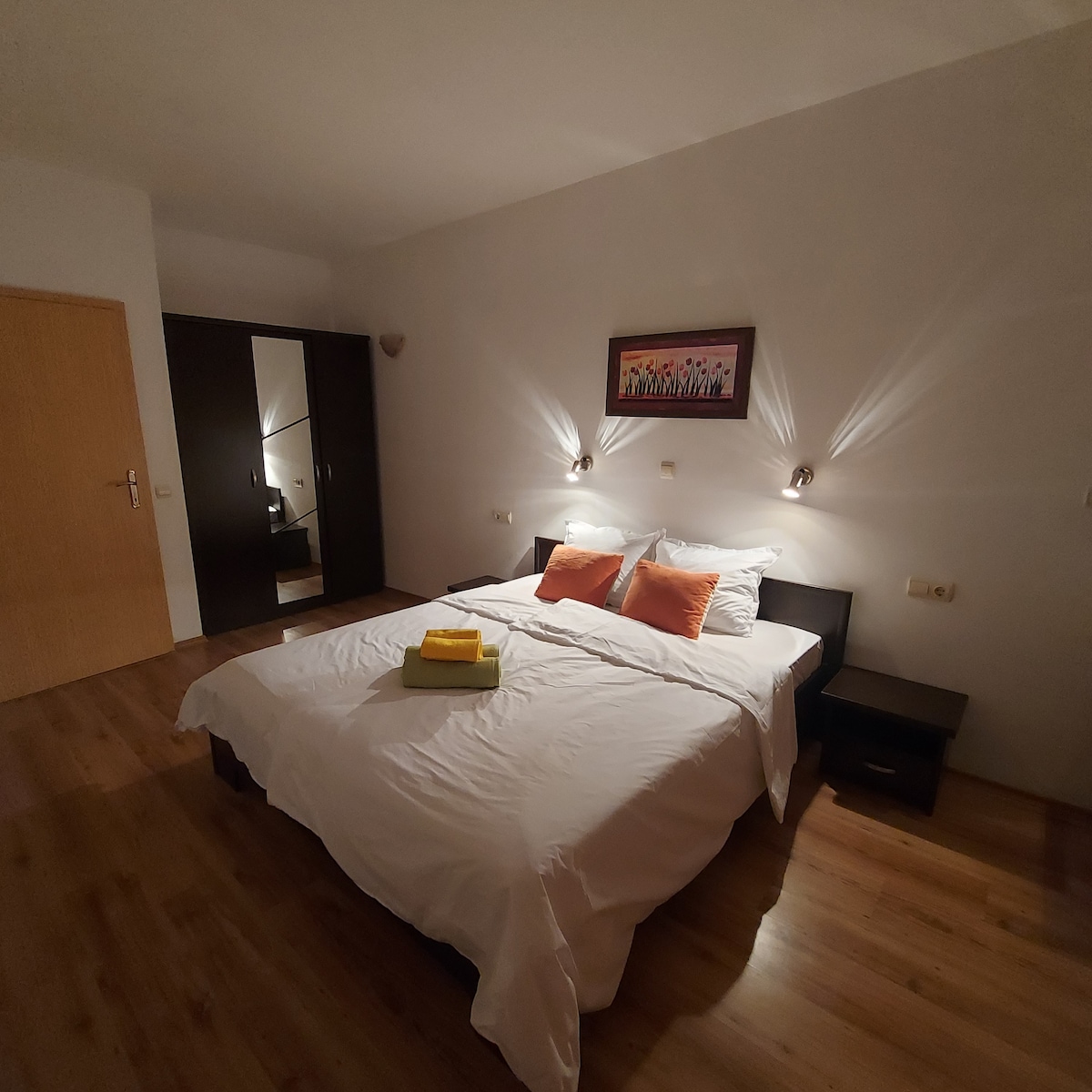 Rymliga lägenheter i södra delen av Sunny Beach, beläget 650 meter från havet. Nära till gamla stan i Nessebar. I närheten finns hela infrastrukturen, butiker, transporter, klubbar. Den berömda Cacao Beach ligger 600m bort. på poolens, restaurang, grillplats och lekpark. Lägenhet med självhushåll och utmärkt WiFi. Jättebra plats för en grupp- eller familjesemester.