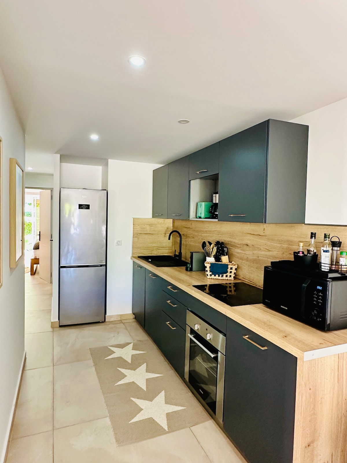 Nyrenoverad i augusti 2025, denna tropiska trädgårdslägenhet är din bit av paradiset. Designad i karibisk stil, har den en uppfriskande pool, utomhusdusch, grillplats, utomhusbio och en mysig paviljong med chillområde och mobila soffor, omgiven av frodig grönska, fåglar, leguaner och sköldpaddor. Perfekt för 2 gäster, med möjlighet till ett extra sovrum + badrum för 2 vuxna (fråga om tillgänglighet). Njut av ett fridfullt öliv där svala vindar och naturen skapar den ultimata tillflykten.