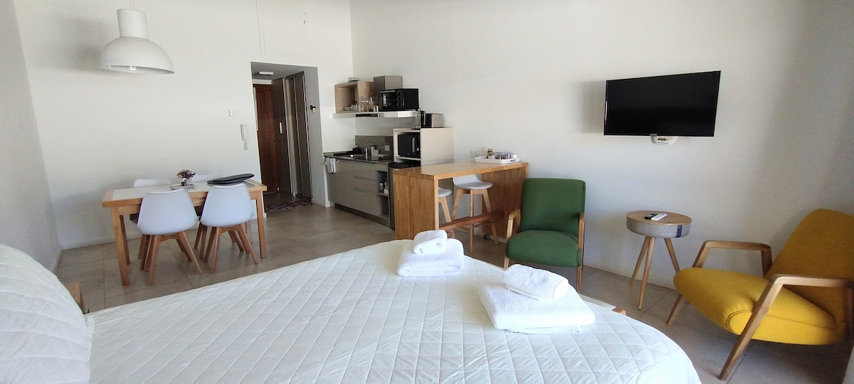 En unik plats att njuta av med familjen eller som ett par. Rymlig lägenhet, superljus och lugn, perfekt för att koppla av och känna sig som hemma. Fullt utrustad med allt du behöver för en bekväm vistelse. Beläget bara 4 kvarter från huvudgatan, men omgiven av butiker, barer och restauranger några meter bort. Den perfekta kombinationen av lugn och närhet till allt