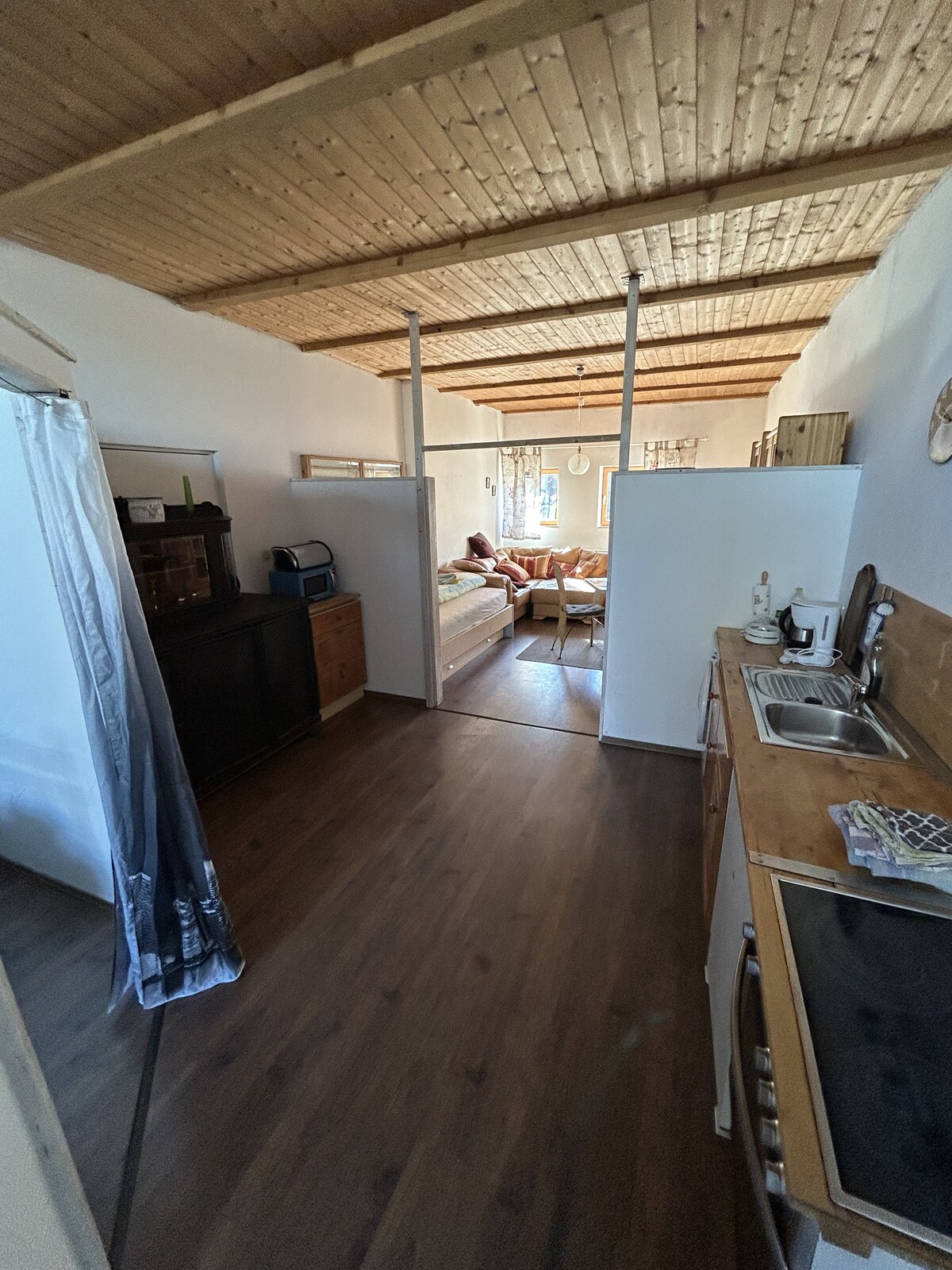 Entspanne dich in unserem kleinen Paradies. Das außergewöhnliche Tiny House hat eine große Terrasse mit herrlichem Blick in den naturnahen Garten. Umgeben von Vogelgezwitscher, Ziegen, Hühnern, und unserem Collie kann man das Landleben genießen. Dolce vita, einfach die Seele baumeln. Im Winter gibt es kein fließend Wasser!!Es steht ein Wasserkanister bereit. Bitte beachten! Im Häuschen nebenan befindet sich die Trockentoilette und Infrarotkabine.