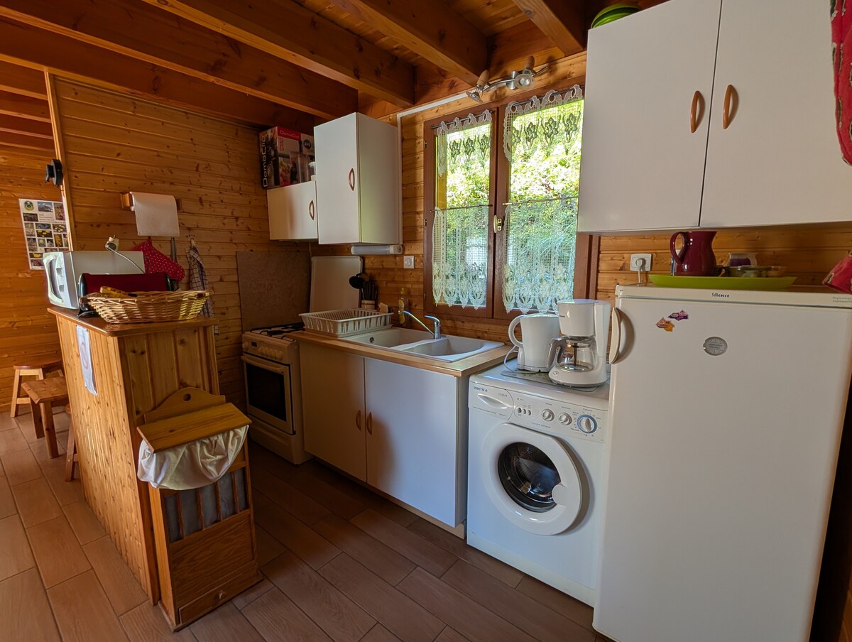 För en natt, en helg eller en vecka, kom och ladda batterierna i en varm trästuga, på stolpar och med alla bekvämligheter! Du kommer att njuta av en para-hotelltjänst, sängen (queen size) är bäddad, handdukar tillhandahålls, städning och desinfektion av rummet ingår. Det stora badkaret lovar dig stunder av avkoppling. Köksområdet gör att du kan vara självständig.