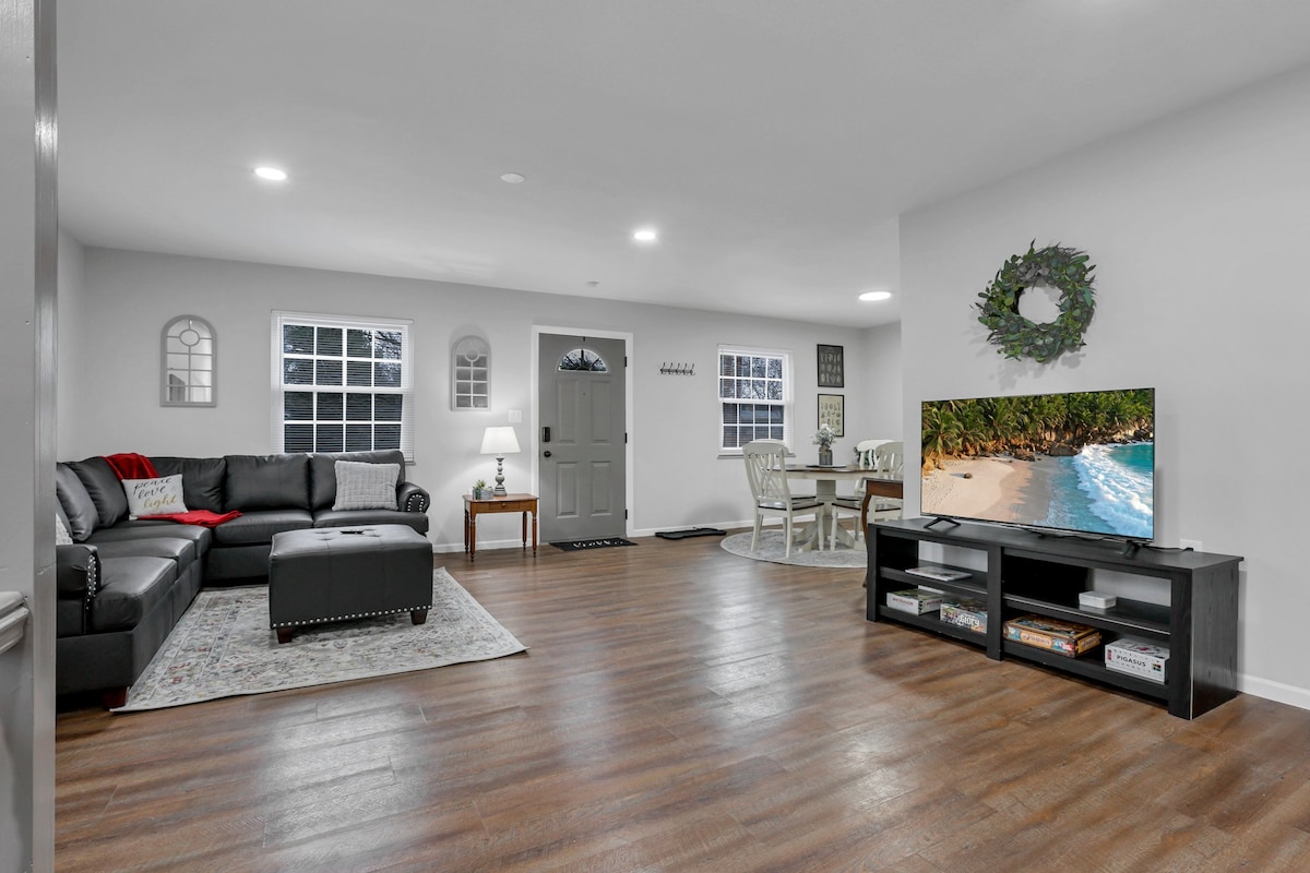 Bekvämt, modernt och bekvämt beläget. Minuter från John Glenn Airport, OSU, New Albany, Columbus, många restauranger, gym, parker, vandringsleder, hantverksbryggerier, shopping och mycket mer! Ditt hem hemifrån är skinande rent och har granitbänkskivor, nya vitvaror i rostfritt stål, ett ljust, fullt utrustat kök, 65" HD smart-TV, snabbt wi-fi, dedikerad arbetsyta, tvättmaskin och torktumlare, täckt bakre uteplats med möbler och eldstad, stor, välskött privat trädgård bredvid en park.