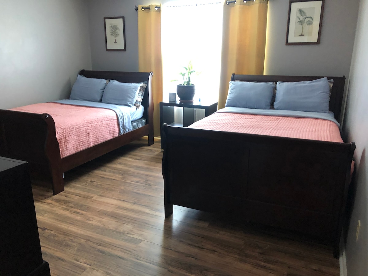Fly till vårt charmiga, fullt uppdaterade radhus där historisk lockelse möter modern komfort. Perfekt för familjer eller grupper, vårt boende har mjuka sängkläder, höghastighets Wi-Fi och privat parkering för fyra. Varje rum är utrustat med Roku Smart TV-apparater, vilket garanterar underhållning efter att ha utforskat stadens sevärdheter. Beläget i Wilmington, bara några ögonblick från livliga platser i centrum och det historiska DuPont Hotel, erbjuder vårt läge i Mid-town Brandywine både lugn och bekvämlighet.
