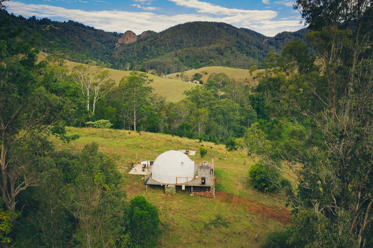 NATURE DOMES 40 min Drive from Port Macquarie, luxury accommodation with the ultimate country getaway, Tom’s Creek Nature Dome It provides simple, serene comfort. The Mountain Dome accommodation is situated in a private valley consisting of 110 acres of lush rainforest, creek and waterfalls 10m drive away, tucked away in the foothills. Experience star gazing or watch a sunrise with plenty of wildlife. Private Bathroom Private Kitchen Private Hot Tub