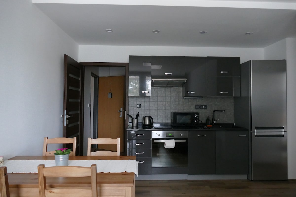 LÄGENHETEN delas inte. Inte lämpligt för spädbarn – om vi samtycker betalar spädbarnet avgiften för en extra person. Specialerbjudande. För lång vistelse- fler personer. Lägenheten är 3+1, 2 rum är låsbara. Boende — gäster 4+ kommer att vara tillgängliga använda 3:e rum — annars mot en avgift. Användning av basicly-1 sovrum+matsal+kök att hyra. Sovrum - dubbelsäng+bäddsoffa lämplig som säng. Kök fullt utrustat. Parkering på gatan gratis. Uppfostrade barn från 6 år är välkomna. Soffa vid köket - inte för sömn.