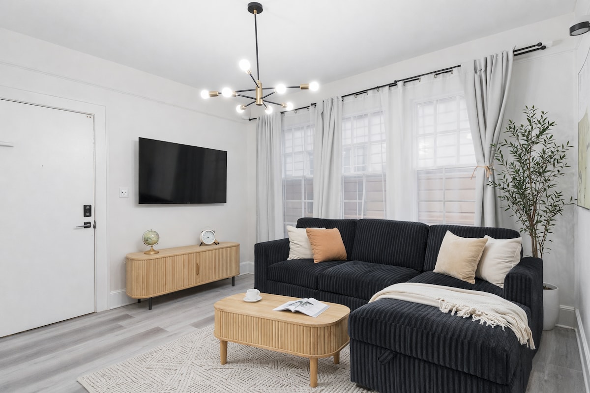 Välkommen till en helt ny modern 1-rumslägenhet bara 1 kvarter från NYC-bunden tåg-nå Manhattan på 30 minuter. Perfekt för par, affärsresenärer och besökare i NYC som söker komfort utanför staden. •Gångväg till NYC-tåg • Newark flygplats – 15 min • Gratis inomhusparkering • Helt ny lägenhet med moderna ytor • Gym, lounge (arbetsplatsvänlig) uteplats och grill •mat/restauranger/marknader i närheten •Fullt utrustat kök, mörkläggningsgardiner • utdragbar bäddsoffa • Säker byggnad – enkel självincheckning