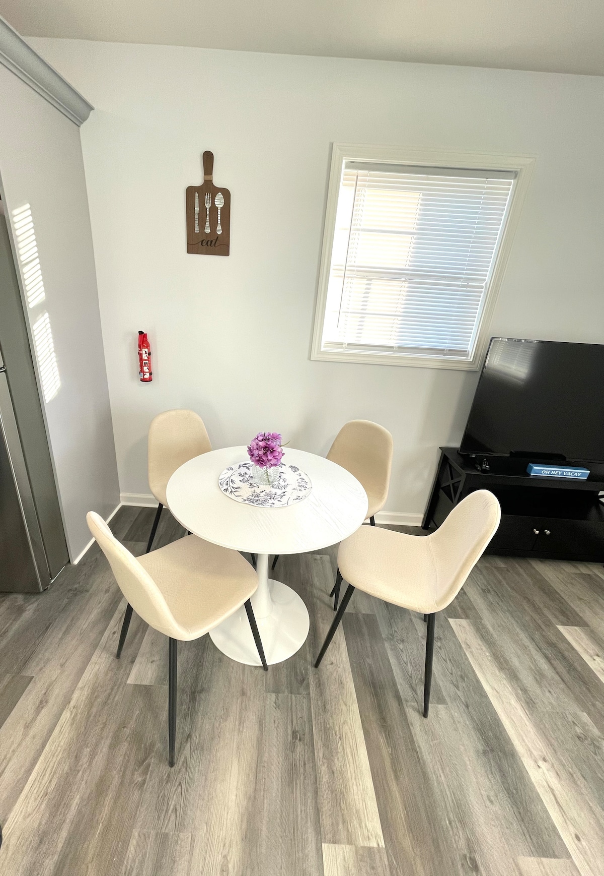 Luta dig tillbaka och koppla av i denna eleganta öppna planlösning. Denna lägenhet ligger på översta våningen i en historisk Newburgh-byggnad och har smart-TV och höghastighets Fios WiFi, en tvättmaskin i enheten, designmöbler och ett separat kontorsutrymme för WFH. Lämplig för 2-4 gäster, det finns en King och en Queen storlek säng. Båda är hybrida minnesskummadrasser med naturliga bomullssängkläder för ultimat komfort och lugn. Två trappor krävs.