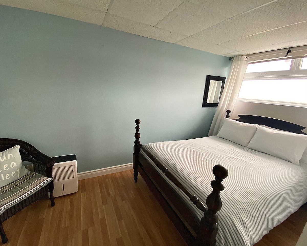 Denna ljusa, rymliga lägenhet ligger i hjärtat av Corner Brook, mindre än 5 minuters promenad från lokala bryggerier, restauranger och en kort bilresa från det lokala sjukhuset och andra bekvämligheter. Sovrummet rymmer 2 och har bäddsoffa i vardagsrummet för att sova 2 till. Köket är utrustat med spis, kylskåp, vattenkokare, kaffebryggare och mikrovågsugn. Disk och redskap ingår även. Gratis parkering över natten på uppfarten. Gratis gatuparkering och gratis parkering tvärs över gatan på kyrkparkeringen.