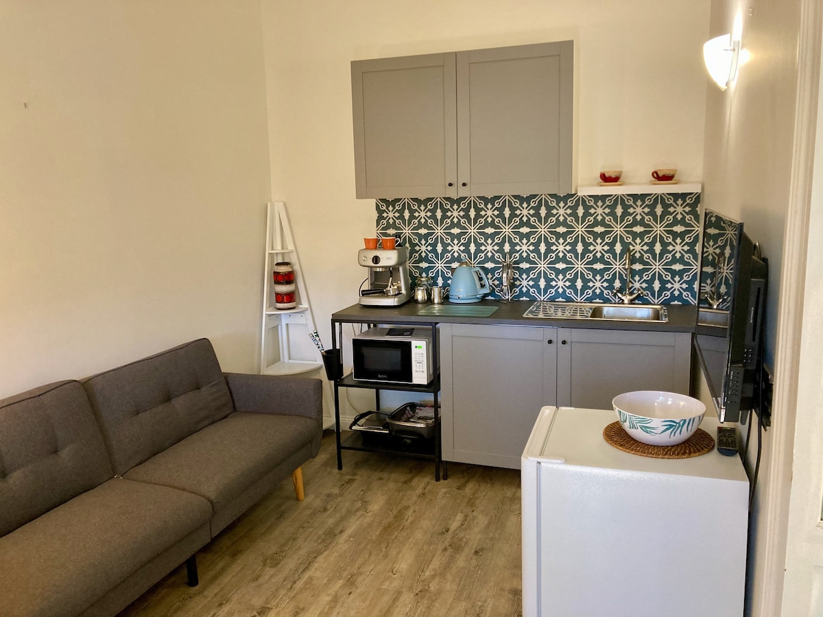 Detta boende är perfekt för dem som föredrar den rustika charmen i en historisk fastighet framför moderna bekvämligheter. Varmt och mysigt på vintern, studion var en gång ett specialbyggt kök i ett hus byggt 1888. Separat ingång. Återvunna möbler, stor säng, soffa, originalspis och badrum med duschkabin. Liten veranda och en kokvrå, delad uteplats. INGET KÖK. För att använda eldstaden, vänligen BYO timmer. För grupper på 4 KOLLA VÅR LILLA STUGA bredvid.