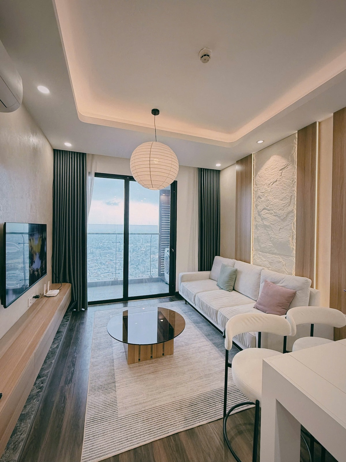 LÄGENHET 🏡 ATT HYRA – DIAMOND CROWN HAI PHONG: Högklassigt och modernt vardagsrum. Storlek: 72 m² 2 sovrum, 2 badrum, 2 balkonger, vardagsrum, kök. Fullt av högklassiga möbler, gäster behöver bara ta med sina personliga tillhörigheter direkt. Hög våning, fin utsikt över Le Hong Phong street, öppet utrymme, tyst. 🔥 Höjdpunkter: Lämpligt för familjeresor, matresor eller affärsresenärer. Beläget i den lyxigaste byggnaden i Hai Phong, bekvämt att röra sig och njuta av de omgivande verktygen
