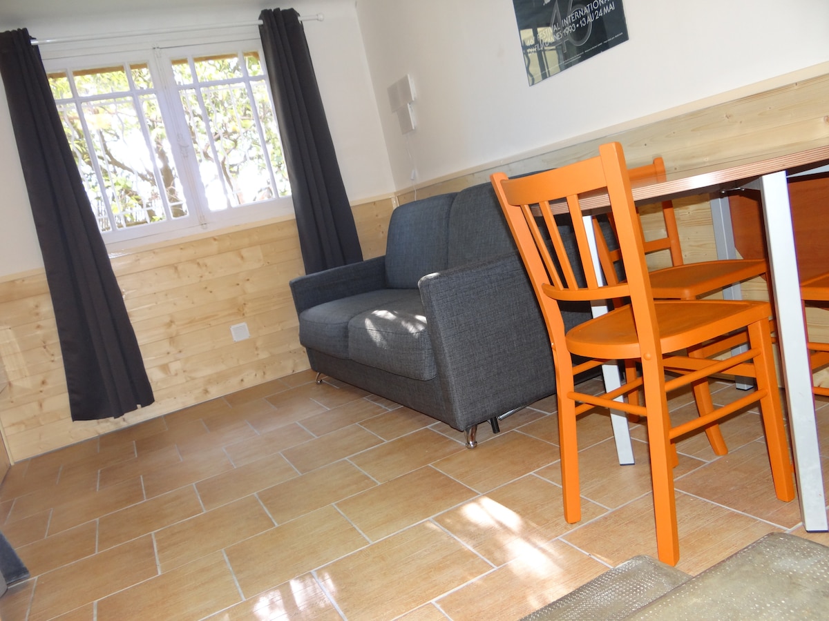 Öppet kök med matplats med: mikrovågsugn, tvättmaskin, frys, kylskåp, Nespresso-kaffemaskin, vattenkokare, brödrost, spishäll. Uteplats: 1 bord och 4 trädgårdsstolar, grill. 2 solstolar i den privata trädgården. Vardagsrum: en soffa för två personer, två matchande fåtöljer, bar, TV. Sängar 1 soffa 140 Sovrum: 1 säng 140 cm, terrass med bord och 2 fåtöljer + privat trädgård. Smådjur tillåts på begäran. Spjälsäng, barnstol.