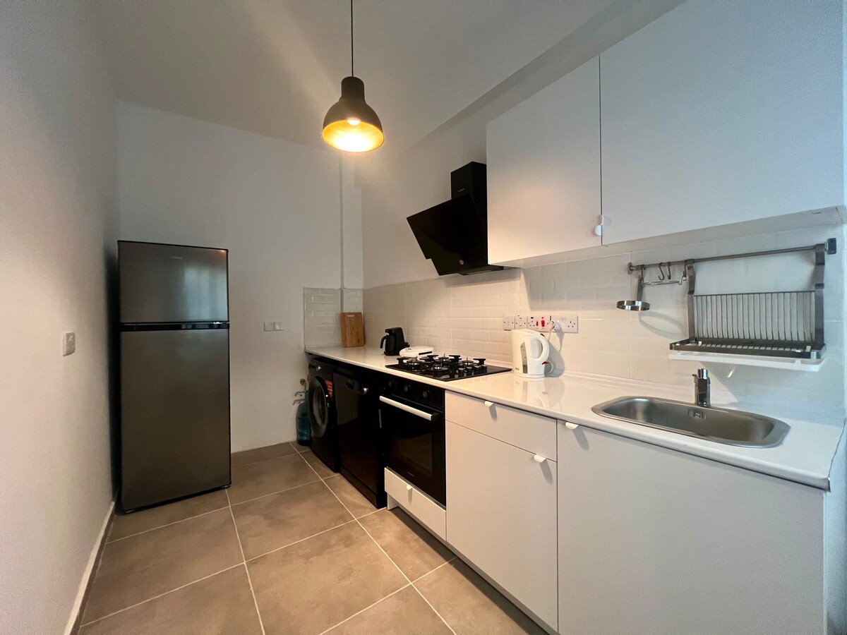 Upplev charmen i vår mysiga lägenhet i stadens hjärta. Med sin inbjudande inredning, bekväma möbler och lugna sovrum är det en fridfull tillflyktsort mitt i den urbana spänningen. Njut av ett fullt utrustat kök, moderna bekvämligheter och ett läge nära sevärdheter och transit. Perfekt för avkoppling och utforskning, det är ditt hem hemifrån. Detta ligger inom gångavstånd från Alsos Forest, som är parken som är en av Nicosias största ekologiska fristäder.