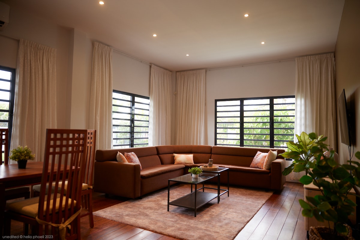 Fly från stressen i centrum och koppla av i vår exklusiva bungalow, inbäddad i hjärtat av Paramaribo. Bara en kort bilresa från Torarica, vattnet, centrum och stora bekvämligheter, garanterar vårt centrala läge bekvämlighet. Upptäck livliga lokala marknader och njut av olika kulinariska läckerheter på närliggande restauranger. Omfamna lugnet samtidigt som du bor inom gångavstånd från förstklassig underhållning och barer. Din perfekta tillflyktsort väntar.