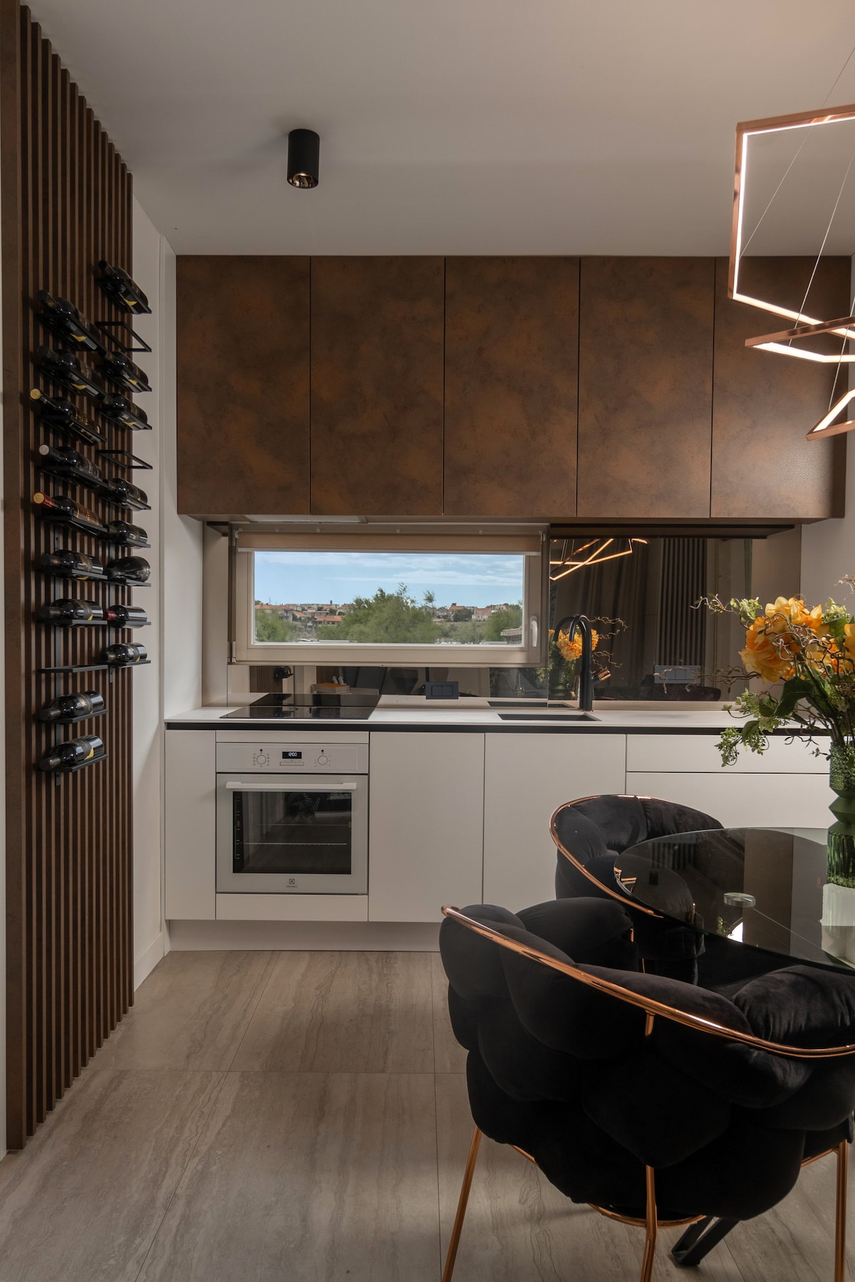 Denna otroliga takvåning täcker hela andra våningen i semesterhuset som byggdes 2021 med totalt 5 enheter. Moderna inredningar, golvvärme, öppen spis och högkvalitativ inredning med känsla för detaljer garanterar en ren "må bra"-vistelse. Den ca 200 m² stora lägenheten inkl. terrass har en otrolig utsikt över havet och ger känslan av att vara omgiven av vatten. På andra sidan kan du se bergen – Kapstads-känsla!