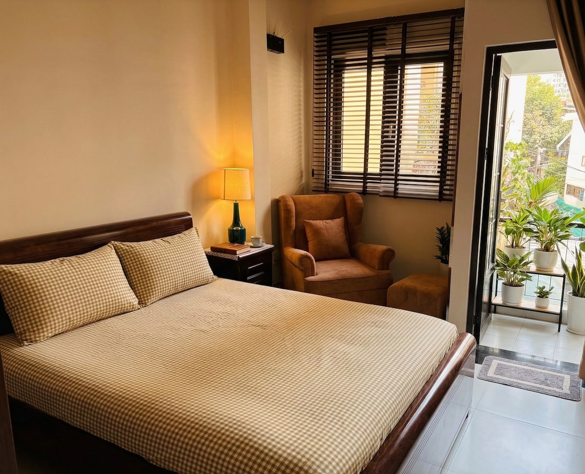 Detta helt nya, fristående tvåvåningshus ligger i ett exklusivt, lugnt grannskap mitt i Can Tho och är en fristad för den omtänksamma resenären. Boendet är målmedvetet utformat för läsning, forskning eller djup avkoppling och erbjuder en sällsynt fridfull atmosfär mitt i stadens centrum. Medan lugnet råder inomhus befinner du dig bara några steg från livlig gatumat, lokala marknader och det ikoniska livet vid floden. Perfekt för dem som söker en sofistikerad tillflyktsort med enkel tillgång till alla bekvämligheter i staden.