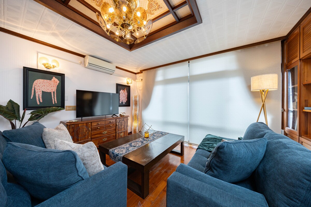 【OCEAN HOUSE】Ett lugnt, rymligt 4BR-boende för upp till 8 gäster. Njut av avlägsen havsutsikt, en varmvattenjacuzzi och en elektrisk grill på terrassen. Endast 5 minuter med bil till stranden och butiker. Beläget i centrala 沖縄県 i 読谷村, ca. 1 timme från flygplatsen och ジャングリア. Stormarknader och kaféer ligger 3–5 minuter bort, och det finns restauranger i närheten. Gratis Wi-Fi, Netflix och parkering för 2 bilar. Aktiviteter inkluderar valhajsturer, snorkling i Blå grottan och Yachimun keramik.