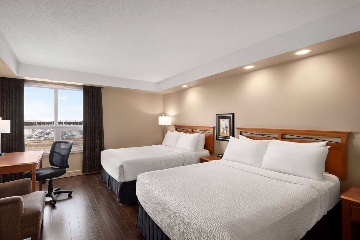 Detta dubbelrum med queen-säng är perfekt för familjer eller vänner och erbjuder delad komfort nära Edmontons flygplats. Med enkel tillgång till shopping, restauranger och kasinot förblir dina planer flexibla. Vila lugnt efter en dags utforskning eller möten.