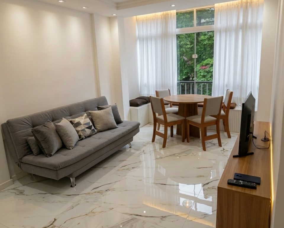 Charme e aconchego em Icaraí! Hospede-se em um apartamento totalmente reformado, a apenas 1 quadra da Praia de Icaraí. Localização privilegiada, no coração do bairro, a 110m da tradicional Padaria Beira-Mar, com cafeteria, farmácia, mercados e restaurantes a poucos passos. Ambientes climatizados, Wi-Fi rápido, decoração pensada nos mínimos detalhes, elevador, portaria 24h e toda a praticidade para uma estadia confortável e segura para até 4 hóspedes.