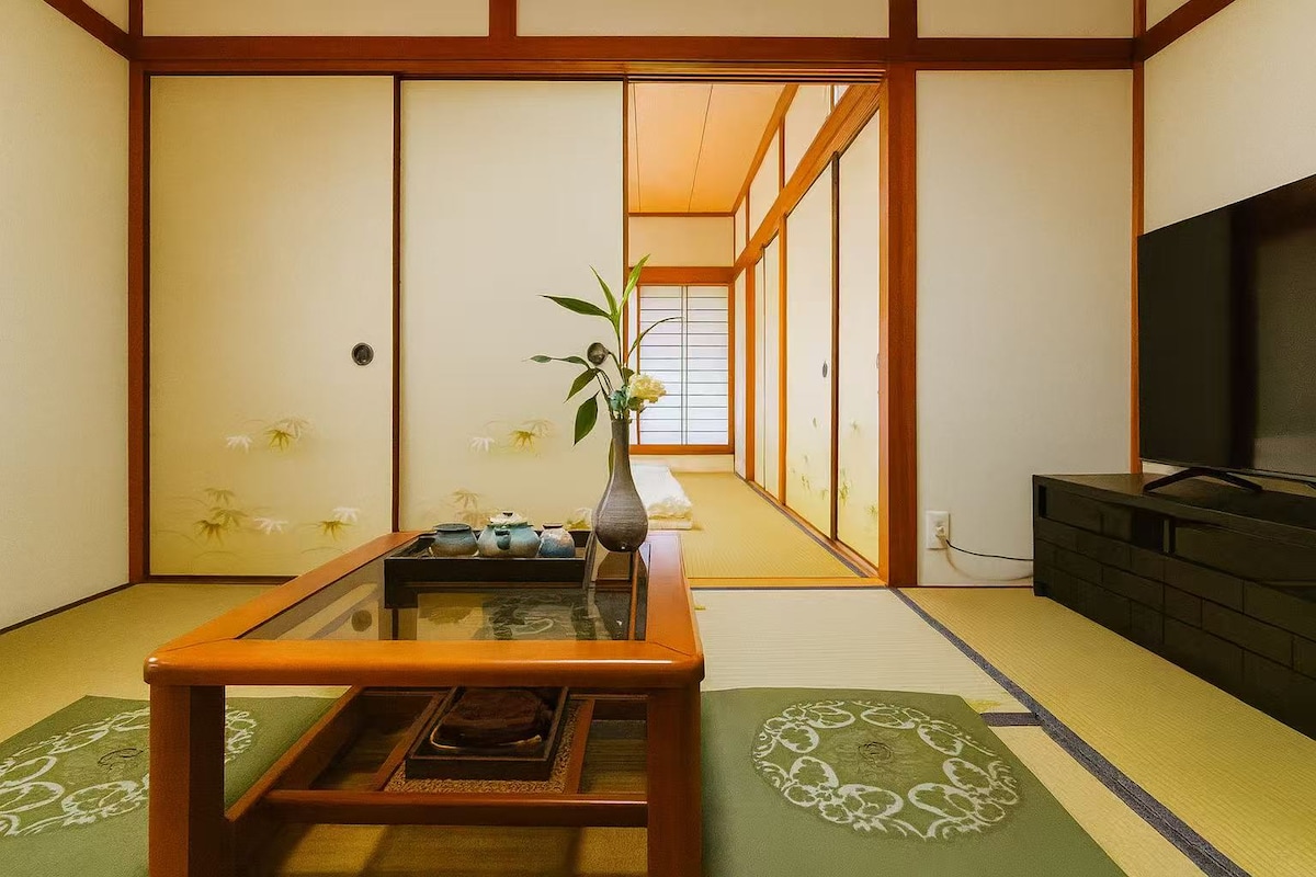 Detta historiska hus från 1909 ligger i Osakas Joto Ward och är en sällsynt överlevande från andra världskriget. Den renoverades 2015 av en berömd designer och sträcker sig över 150! och blandar historisk charm med modern lyx i en lugn tillflyktsort i centrum. Dess eleganta design harmoniserar tidigare och nutid, erbjuder kulturell fördjupning och rymlig komfort. Med två badrum, separata toaletter, handfat och ett stort bad, säkerställer det avskildhet och renlighet för grupper. Upplev kultur, historia och komfort din perfekta vistelse i Osaka väntar.