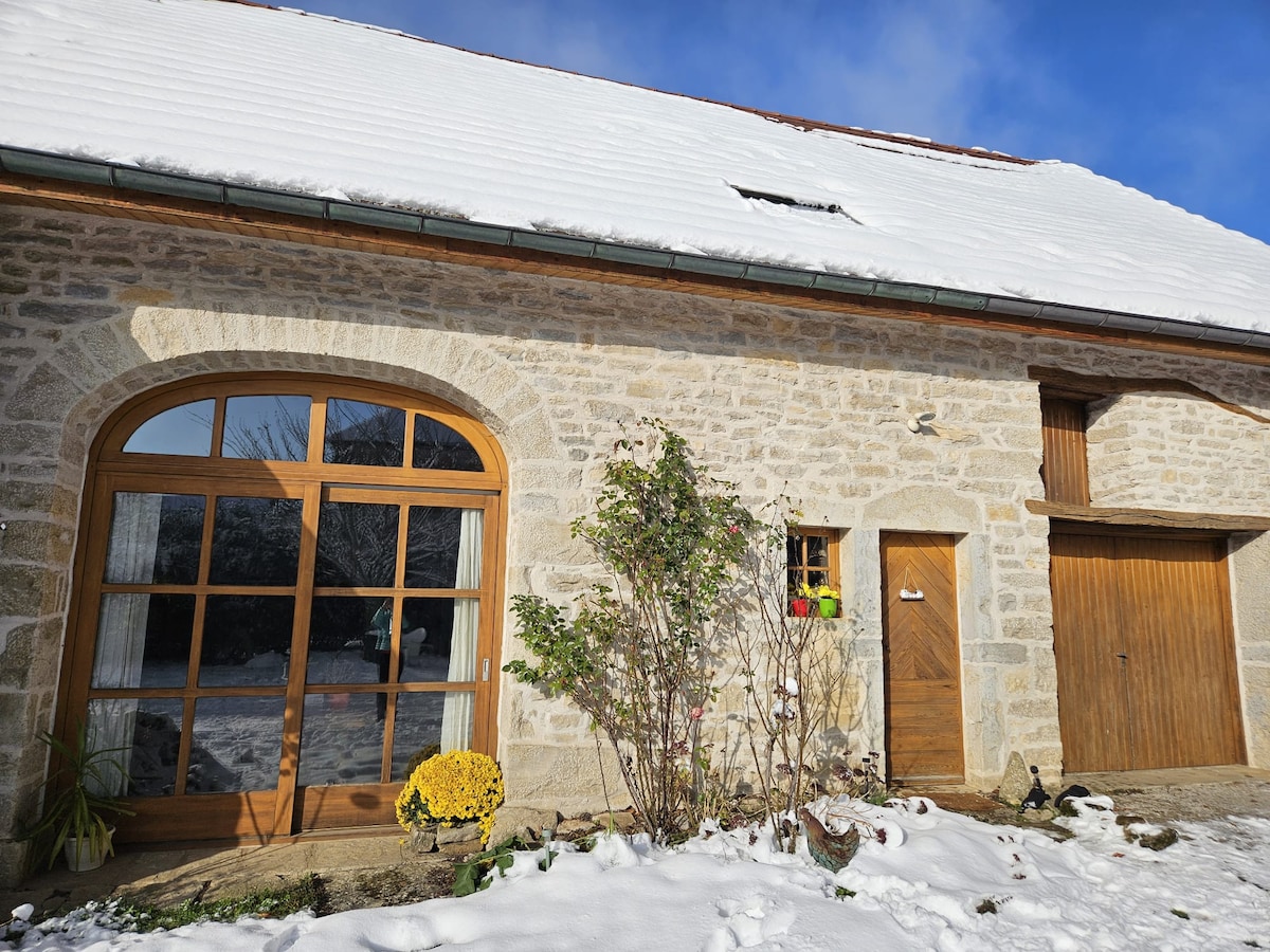 Rymliga rum, högt i tak (3,80 m), vackert dagsljus, byggt i sten och trä, antika möbler, fullt utrustat med nya hushållsapparater, centralvärme + vedspis. Avskild, naturlig och lugn miljö. Nära till butiker (6 km Orgelet och 10 km Lons-le-Saunier). Närhet till många turistattraktioner. Perfekt för vandringar, öppet året runt, lägsta hyra 2 nätter, helg eller vecka. 5 bäddar (1 sovrum + 1 bäddsoffa).