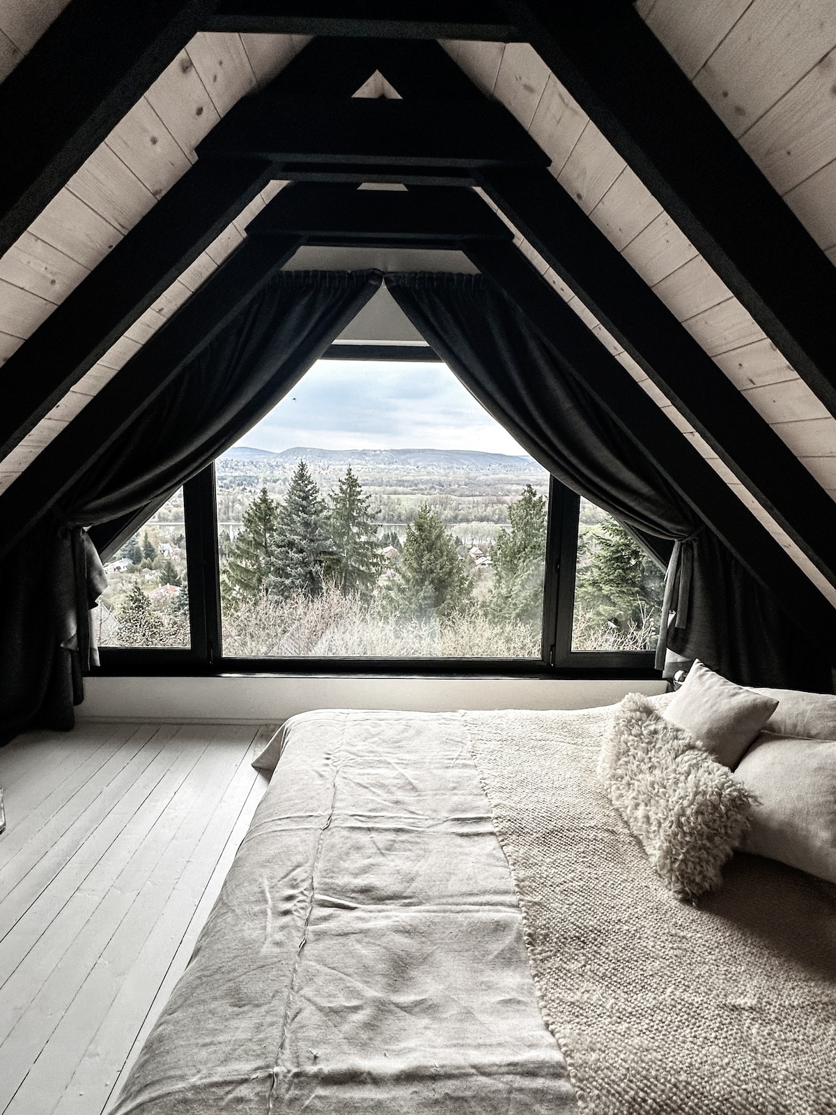 Detta tvåvåningshus (med separata ingångar) med 2 badrum och plats för 6 personer ligger i utkanten av skogen och är det perfekta valet för grupper av vänner som vill koppla av och för större familjer med barn. Det stora gemensamma utrymmet är idealiskt för delade måltider, samtal och umgänge. Från rummet (även från sängen) och från terrassen – en vacker panorama av Donau Bend utvecklas framför dig. Du kan avsluta dagen med morgonkaffe på panoramaterrassen, solnedgång på kvällen och en grillplats i trädgården för riktiga delade upplevelser.
