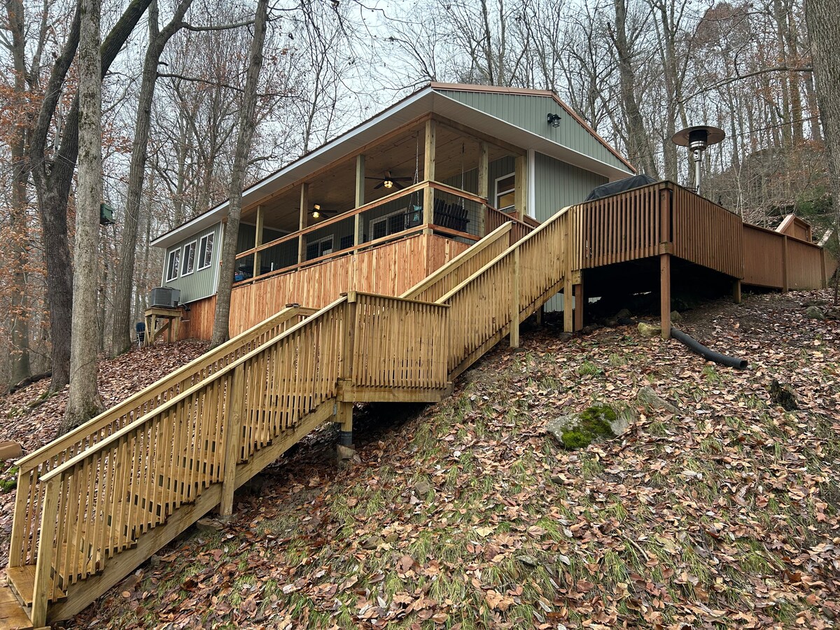 Doc 's Place kommer säkert att vara ditt boende utanför boendet. Med en idealisk plats med utsikt över stranden av Rough River är detta hem en utomhusälskares dröm. Njut av tiden med att gungas på verandan, steka marshmallows vid eldstaden eller spela något av våra inomhus- och utomhusspel. Med komfort i åtanke har vi gjort det till en prioritet att se till att alla dina behov tillgodoses. Köket har fyllts med alla nya kastruller, kastruller, tallrikar, kaffe och allt däremellan. Om vi inte har det kommer vi att få det.