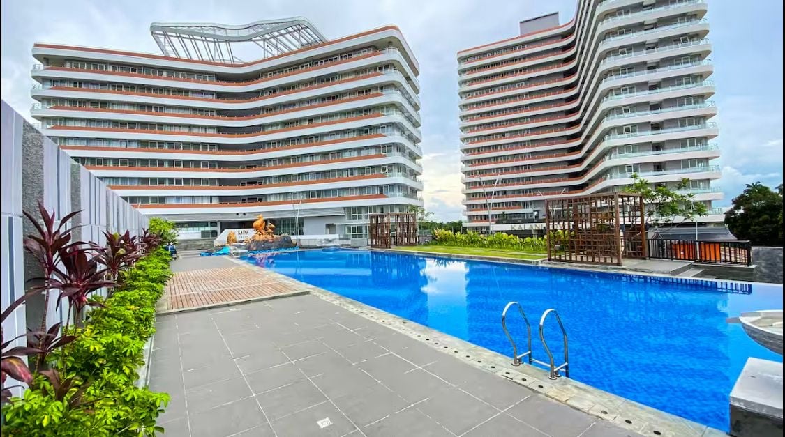 NYRENOVERAD STUDIO-LÄGENHET MED GOLFVY för ENSAMRESARE och PAR ✨ ✔️ Beläget i Kalani Tower av The Nove ✔️ 10 minuters promenad från stranden och havsaktiviteter ✔️ 4 minuters bilresa till Palm Springs Golf & Beach Resort ✔️ Grundläggande bekvämligheter: duschtvål, schampo, handdukar etc. ✔️ Varmvattenberedare, tvättmaskin, diskbänk, mikrovågsugn, minibar, bestick och vattenkokare tillhandahålls ✔️ Gym på bottenvåningen ✔️ Simbassäng på andra våningen ✔️ Netflix tillgängligt ✨