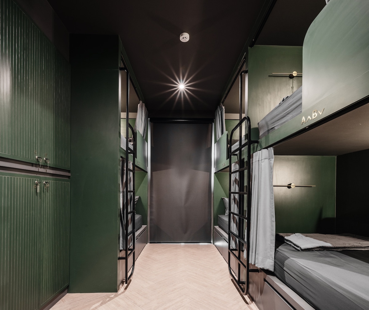 Our Private 8-Beds Dormitory is perfect for small groups or families who want to stay together in a private space while enjoying the vibrant atmosphere of a hostel. The room features two sturdy bunk beds with fresh linens, personal reading lights, and secure lockers for each guest. Bathroom facilities are shared with other guests but are separated into male and female bathrooms for comfort and privacy.
