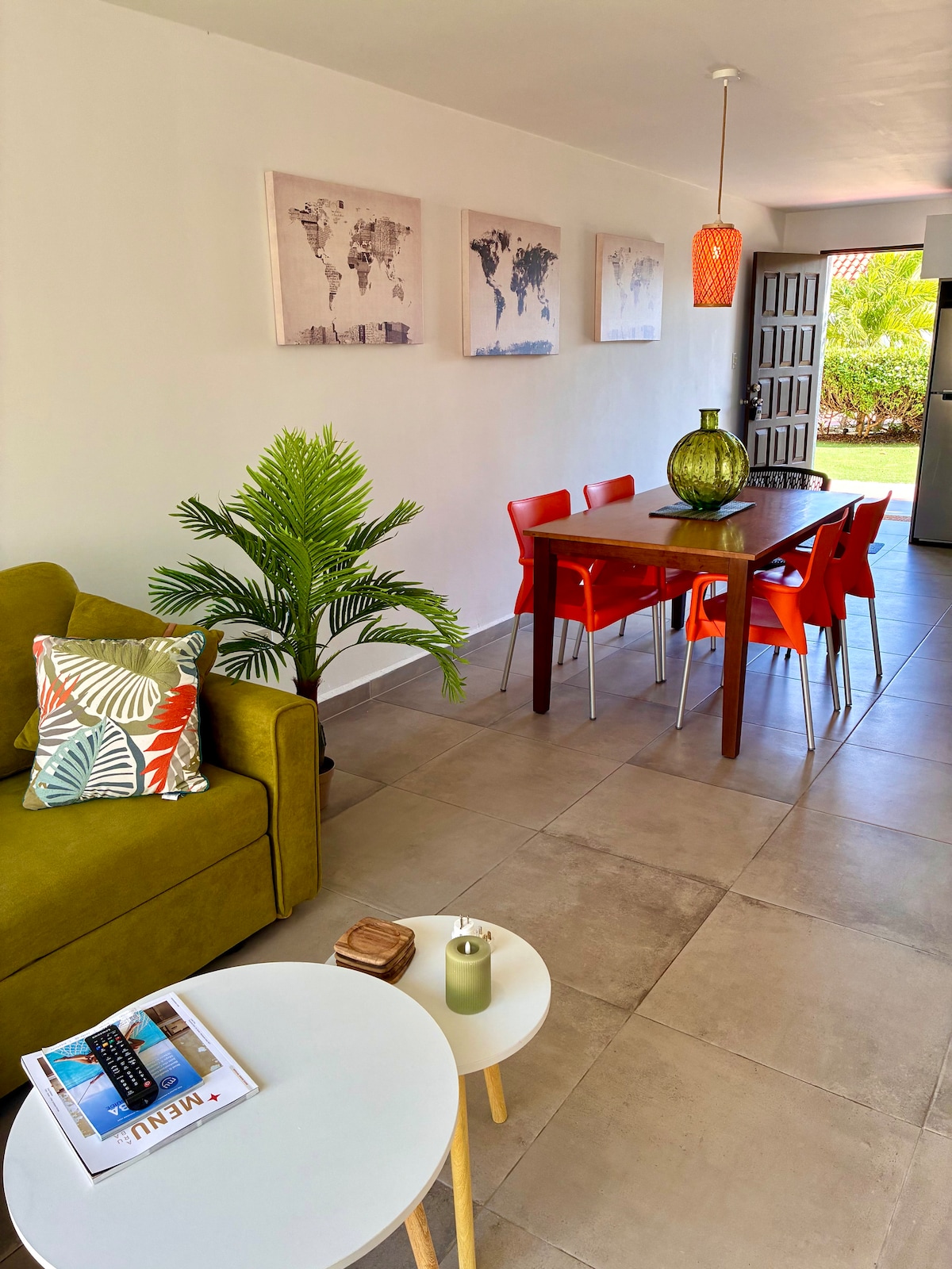 Välkommen till ditt öhem hemifrån, ett vackert inrett 2 sovrum, 3 badrum radhus i det lugna Gold Coast samhället. Omgiven av lummiga trädgårdar och ligger bara några steg från en av de fridfulla delade poolerna, är denna reträtt perfekt för resenärer som söker en blandning av komfort, avskildhet och enkel tillgång till Arubas bästa stränder. ✔ Open Design Living ✔ Fullt utrustat kök ✔ Höghastighets-wifi ✔ Balkonger ✔ Smart-tv ✔ Fri parkering ✔ Gemensamma bekvämligheter (pooler, Gym, Tennis)