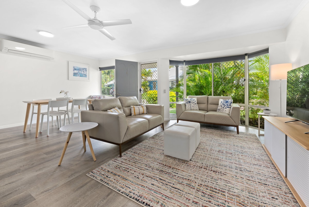 Gå in i en rymlig men kompakt villalägenhet och fördjupa dig i en lyxig gömställe. Vår renoverade bostad är vackert presenterad, bekväm med en fräsch elegant känsla. Centralt beläget med 5 minuters promenad till Noosa Junction med sina restauranger, barer, butiker, stormarknader och transitcenter. En kort 20 minuters promenad till Noosa Main Beach och Hastings Street intill Noosa National Park. Beläget i ett lugnt område i Noosa njut av våra privata innergårdar och välkomnande inredning.