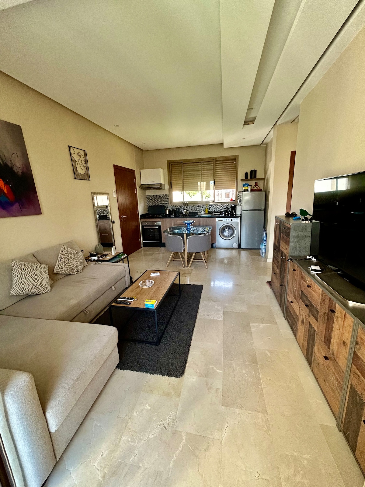 Mysig lägenhet 10 minuter från Marrakechs flygplats Denna eleganta och mysiga lägenhet ligger bara 10 minuter från Marrakech Menara flygplats och erbjuder den perfekta blandningen av komfort och bekvämlighet. Den ligger i ett lugnt grannskap och ger enkel tillgång till stadens livliga medina, kulturella landmärken och populära sevärdheter. Oavsett om du är här för en snabb mellanlandning eller en längre vistelse är denna lägenhet din perfekta bas i Marrakech.