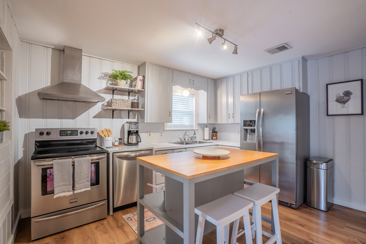Få ut mesta möjliga av ditt nästa besök i Austin med denna moderniserade 1950-talsbungalow centralt belägen i det charmiga grannskapet Crestview. Gångavstånd till Brentwood Park och ikoniska lokala anläggningar som JuiceLand & Taco Deli. Perfekt för familjer, par, ensamma äventyrare och affärsresenärer. 3 miles till Q2 Stadium (hem till Austin FC) och bara 15 minuter från flygplatsen! Rymmer 6 gäster med 2 sovrum, 1 badrum + bäddsoffa. Stor, inhägnad bakgård inklusive uteplats.