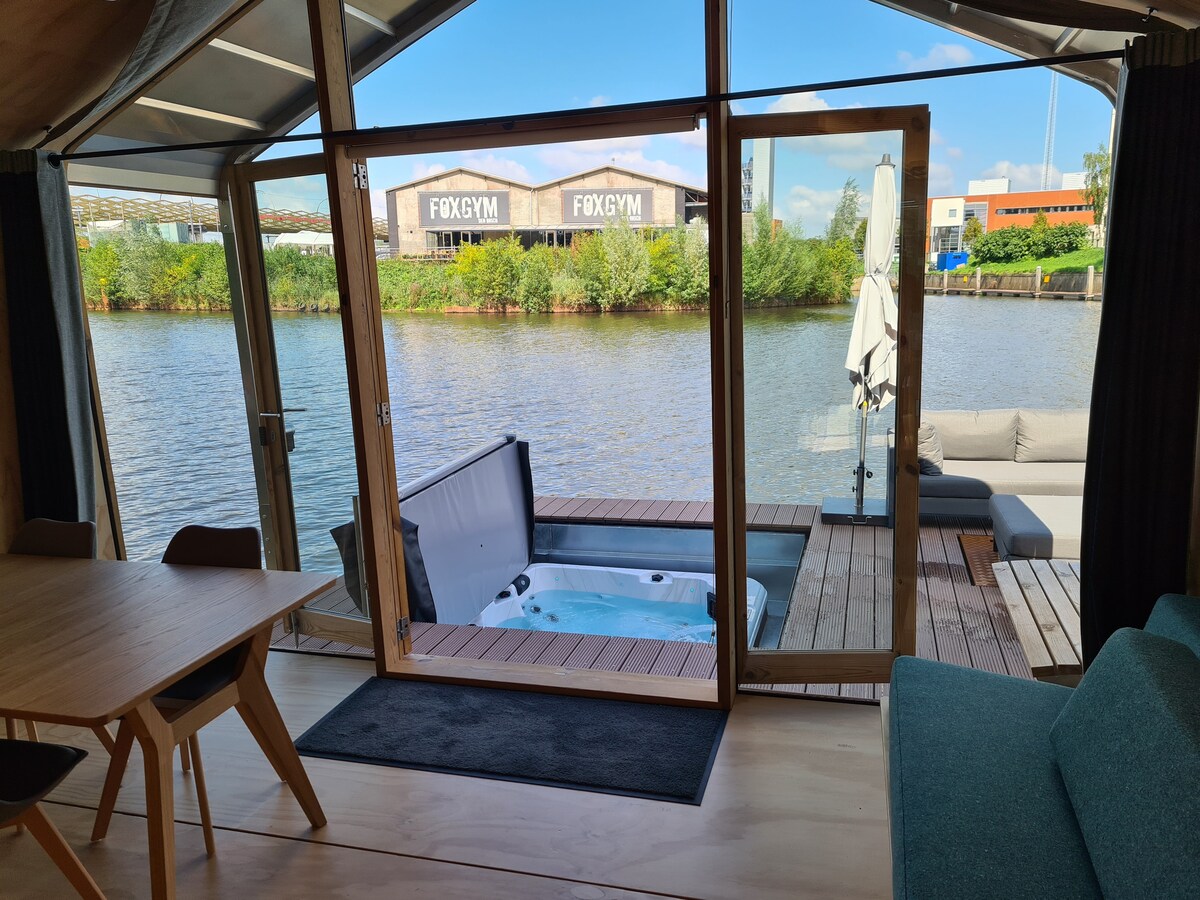 Exclusive Houseboat 12 x 5 m with sauna and hottup
