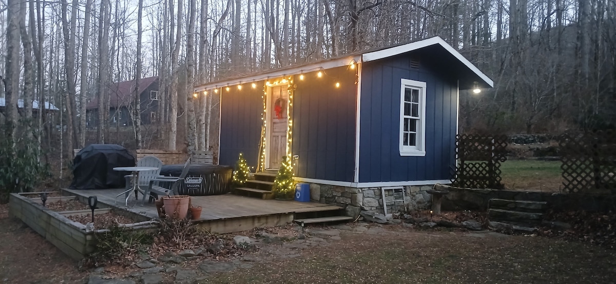 Cozy, Mountain Christmas vibes! Perfect for couples! This cabin is nestled at the back of our property, only 5 minutes from Bearwallow Mt, a +4000 ft mt with a great trail, pasture top and stunning views. Why drive for a hike or trophy trout when you can have it all within 5 minutes .. Whether you’re looking for fishing, hiking, or the live music, breweries, shopping and attractions like the Biltmore, this place is close to it all. Asheville (25mins), Hendersonville (25), Chimney rock(15 min)