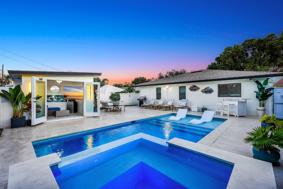 Gångavstånd till stranden 1 mil - Stor uppvärmd pool King-säng