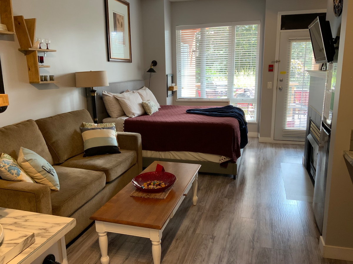 Mysig studio med öppen spis och grill | Vid flygplats och UBCO