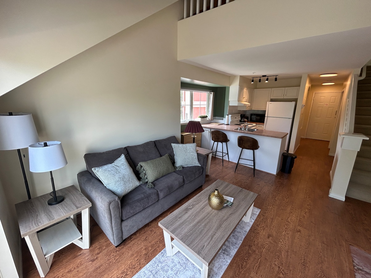 Välkommen till vår fantastiska takvånings-svit som ligger på golfbanan. Beläget i hjärtat av Kelowna, Kanada. Denna charmiga tillflyktsort med 1 sovrum och 2 badrum erbjuder en lugn utsikt över golfbanan, vilket garanterar en lugn vistelse. Njut av moderna bekvämligheter inklusive väsentligheter, tvättmaskin, luftkonditionering, allmän uppvärmning, höghastighets trådlöst internet, ett fullt utrustat kök med spis och kylskåp. Perfekt för par eller ensamresenärer som söker en blandning av avkoppling och bekvämlighet.
